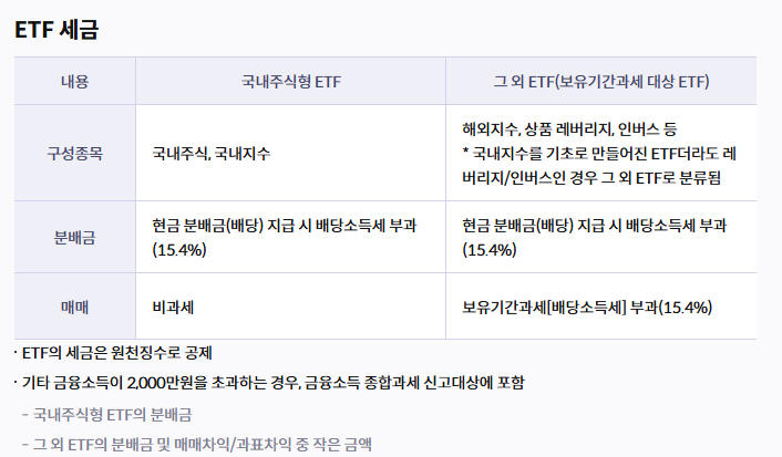 ✔ 해외 ETF, 채권형 ETF: 매매 차익의 15.4% 배당소득세 부과