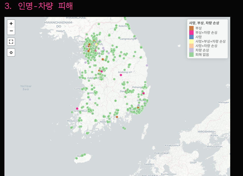 위 링크를 클릭하면, 전국의 싱크홀 발생 데이터를 시각화한 지도 페이지로 이동합니다. 해당 지도는 아래와 같은 방식으로 활용할 수 있습니다.