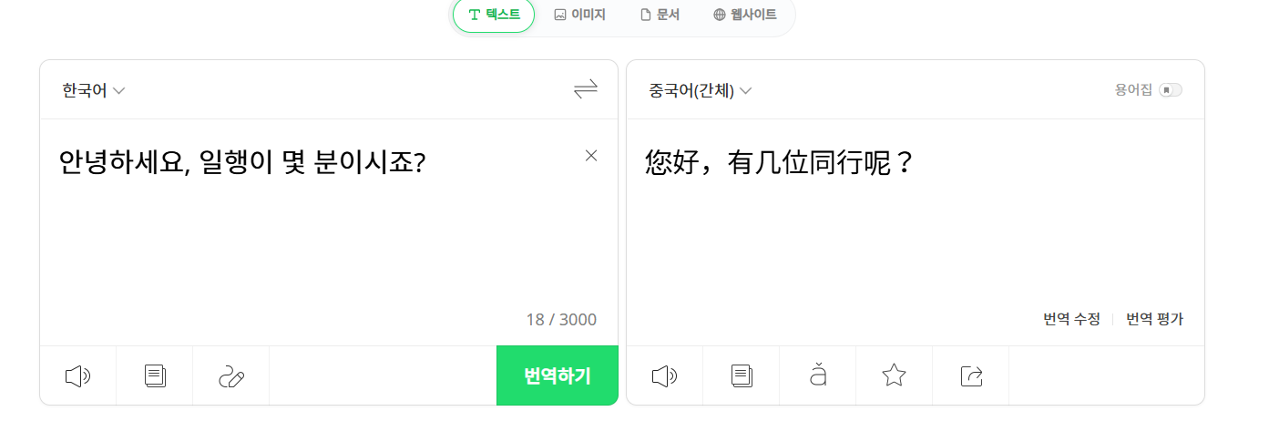 - 좌측에 번역할 문장을 입력하고, 우측에서 번역 결과 확인