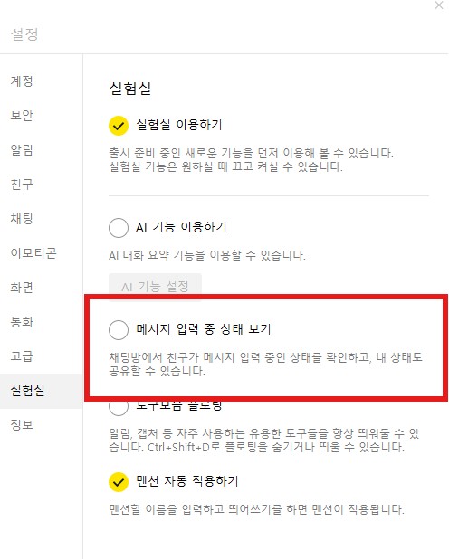 카카오톡 입력중 끄는 방법: 새로 생긴 기능 해제하는 법