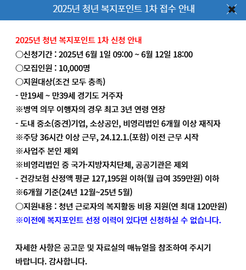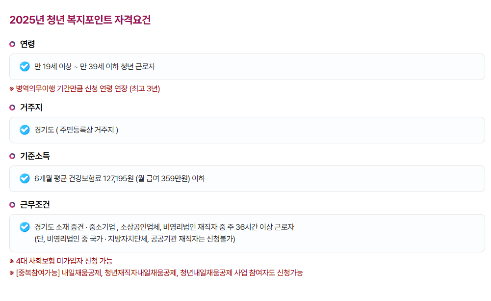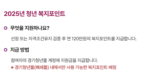 이 사업은 단순한 포인트 지급을 넘어, 청년의 중소기업 장기근속과 복지 향상을 동시에 실현하려는 경기도의 실질적인 정책이에요.