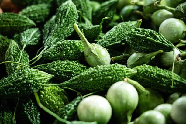여주는 박과에 속하는 덩굴성 식물로, 생김새는 오이와 비슷하지만 겉표면이 울퉁불퉁하고 색은 짙은 녹색을 띠어요. 주로 아시아와 열대지방에서 자라며, 우리나라에서는 7~9월 사이에 수확되는 여름 채소예요.