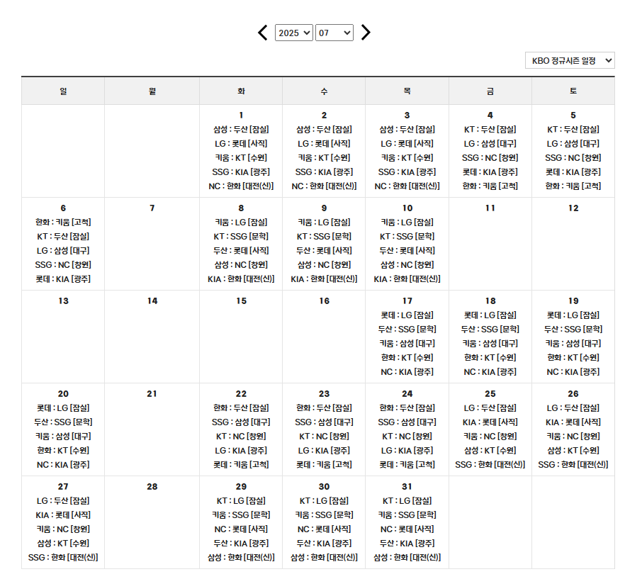 2025년 7월 KBO 주요 일정 요약