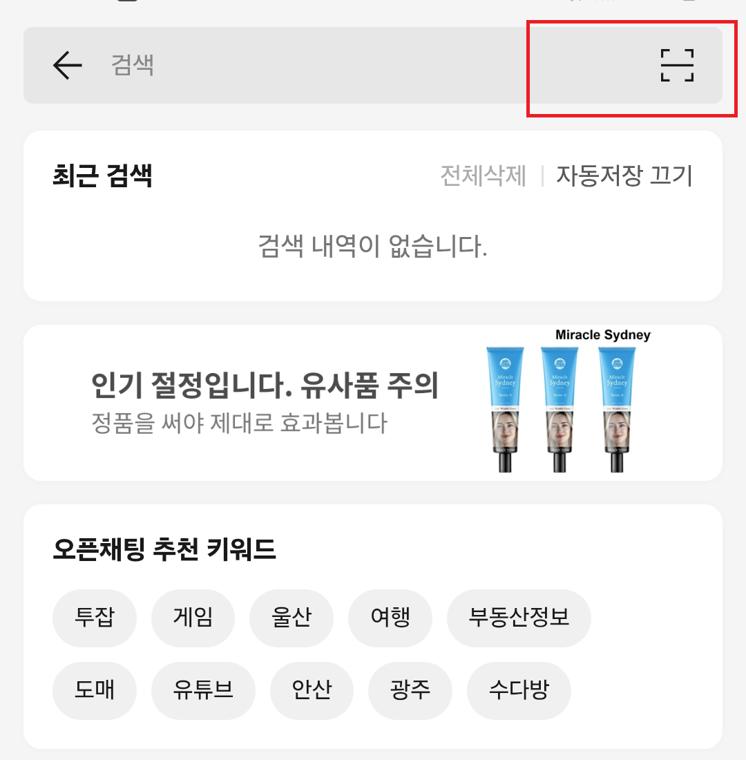 - 앱 화면 상단 검색창 오른쪽 또는 하단에 있는 '렌즈' 아이콘 (또는 카메라 아이콘)을 터치해요.