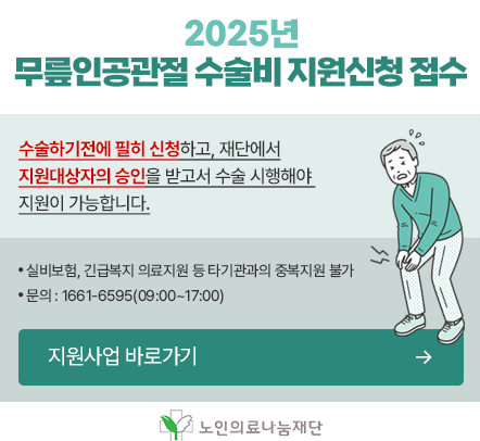 ※ 병원 진단서 등 '슬관절 인공관절이 필요한 상태'임을 증명할 수 있어야 합니다.