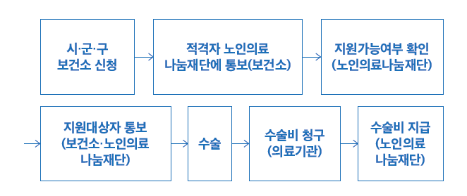 - 사전에 노인의료나눔재단의 선정 심사를 통과해야 합니다.