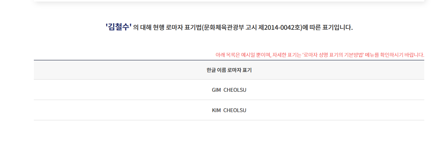 예: 김영희 → Younghee Kim (영문 이력서용), Kim Younghee (여권 표기용)