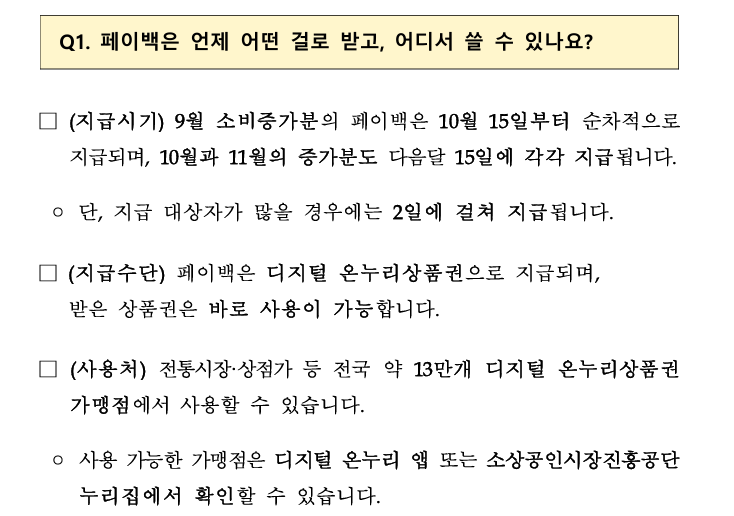 페이백 지급 방식 & 사용처