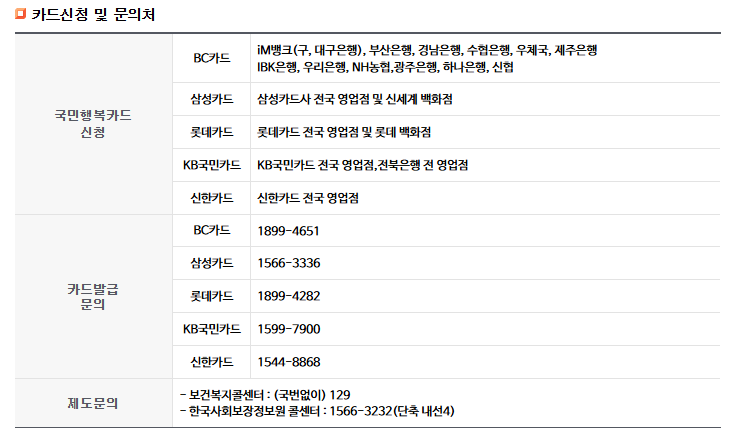- 국민행복카드 발급 필요