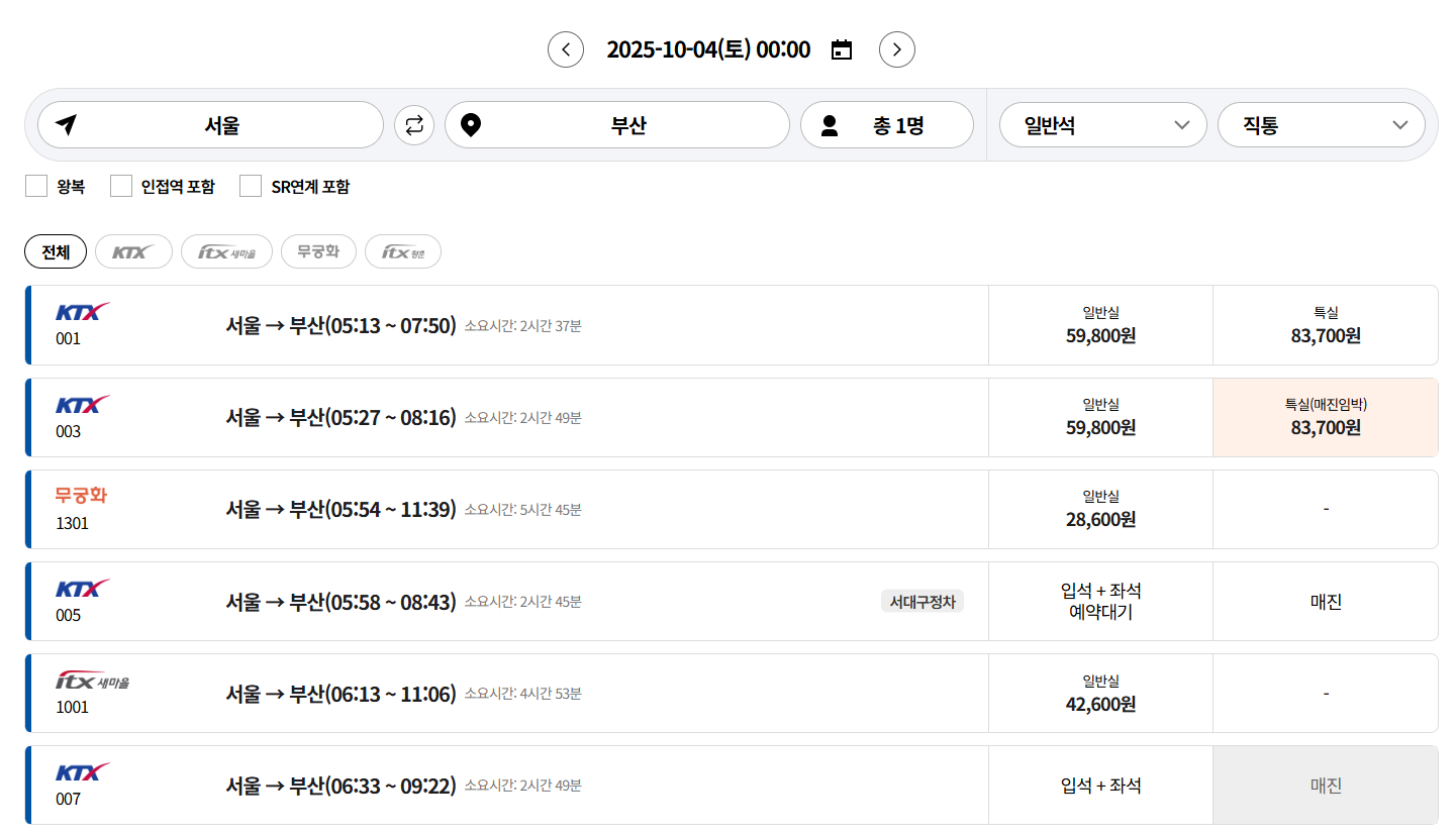 - 취소표는 언제 가장 잘 나오나요? – 결제 마감 직후, 예매 시작 전후 새벽 시간, 출발 하루 전 또는 당일에 풀릴 가능성이 높습니다.