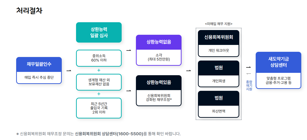 새도약기금은 원칙적으로 별도 신청을 받지 않고 협약 금융사 보유 연체채권을 기금이 먼저 매입한 뒤, 그 대상에 한해 조정·소각 절차를 밟아요. 그래서 ‘내가 대상자인지’ 확인하려면 내 채권이 기금에 매입되었는지부터 확인해야 해요. 매입 완료분은 2025년 11월 이후 홈페이지에서 순차 확인 가능하니 공식 안내를 체크하세요.