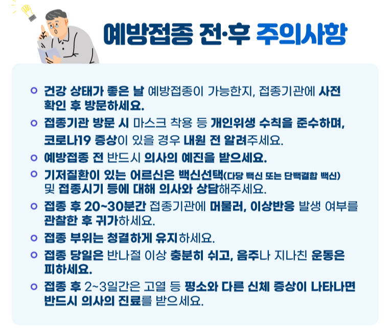 기저질환이 있는 경우 예방접종 전 의료진과 상담하시기 바랍니다.