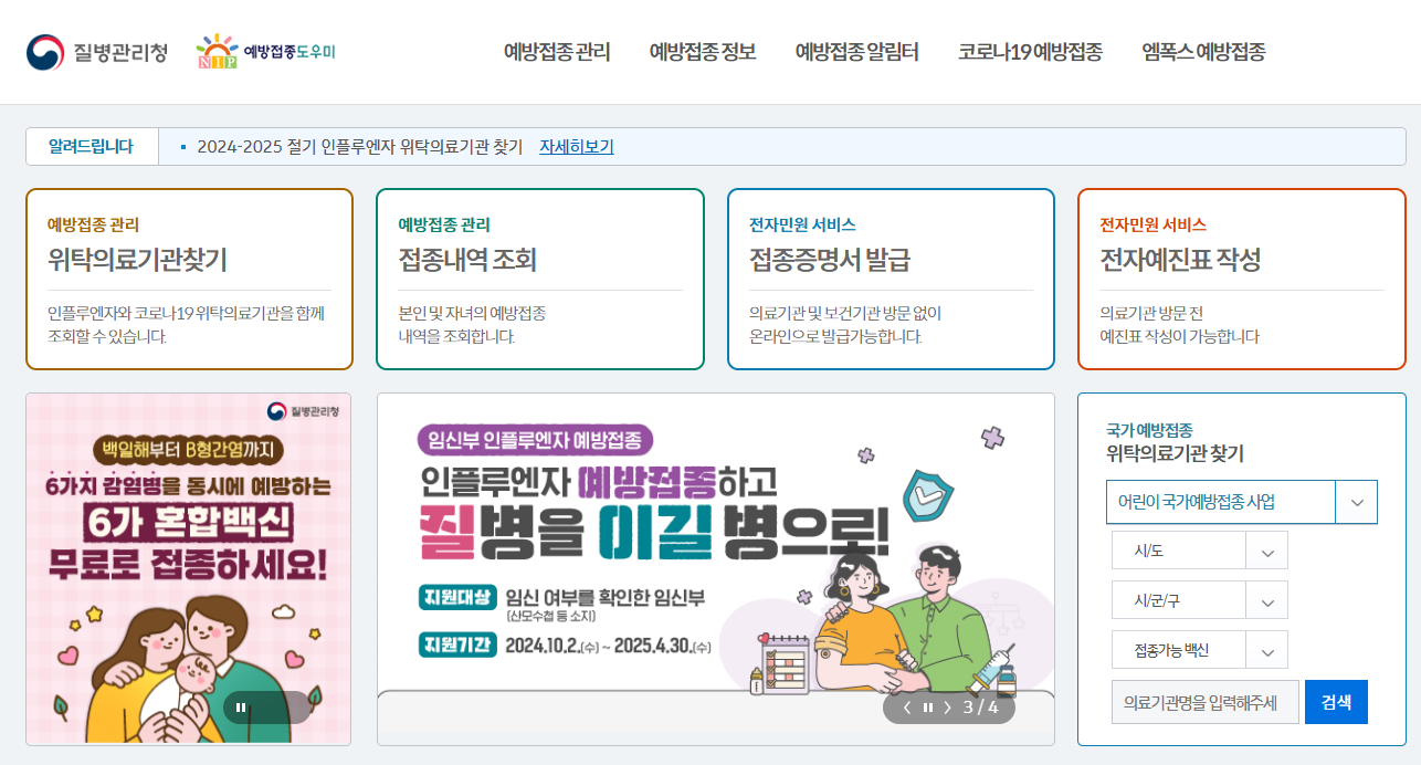 예방접종도우미 홈페이지 이용