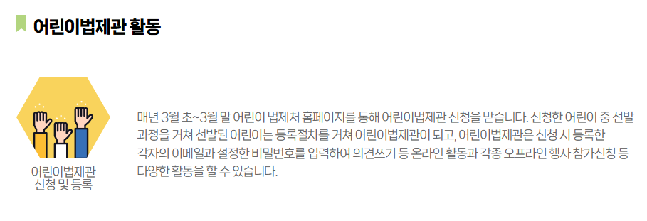 ✔ 어린이법제처 홈페이지에서 신청 가능