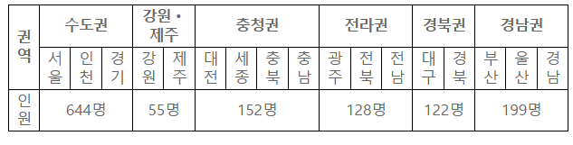 ✔ 선발 방식: 권역별 배정 인원을 감안하여 선착순 모집