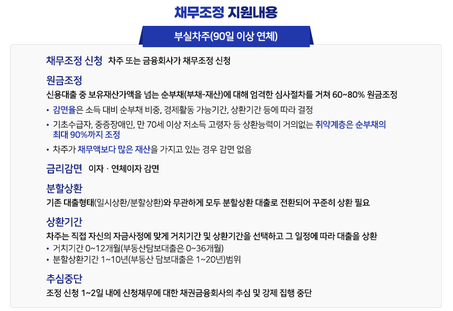 - 원금 감면 및 지원 조건은 신청자의 상황에 따라 달라질 수 있음