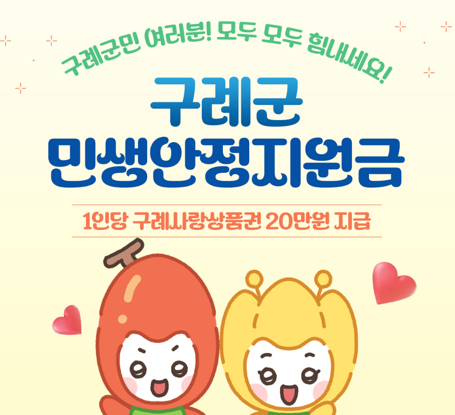 구례군에서 제공하는 민생안정지원금을 빠짐없이 신청하여 혜택을 받으시기 바랍니다!